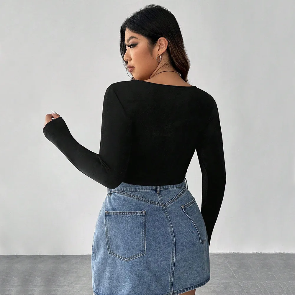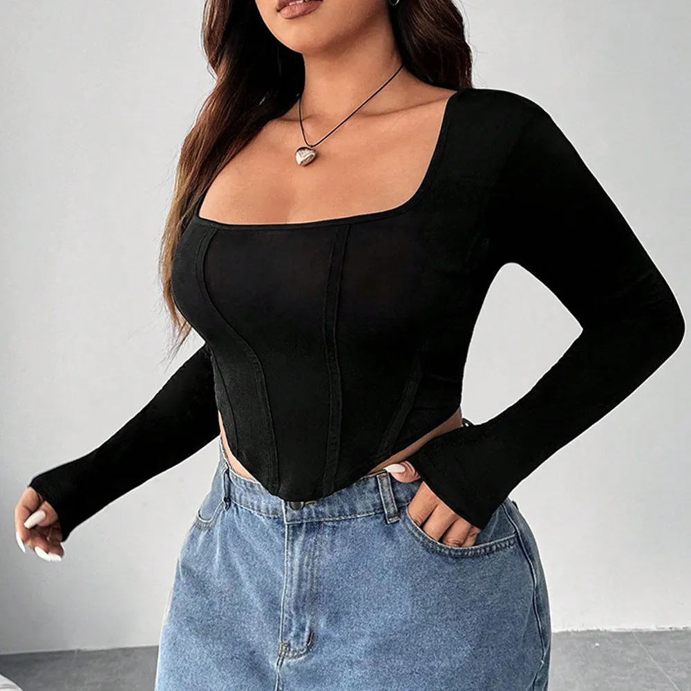 | Product Name | Plus Size Women Square Neck Solid Basic Irregular Top |