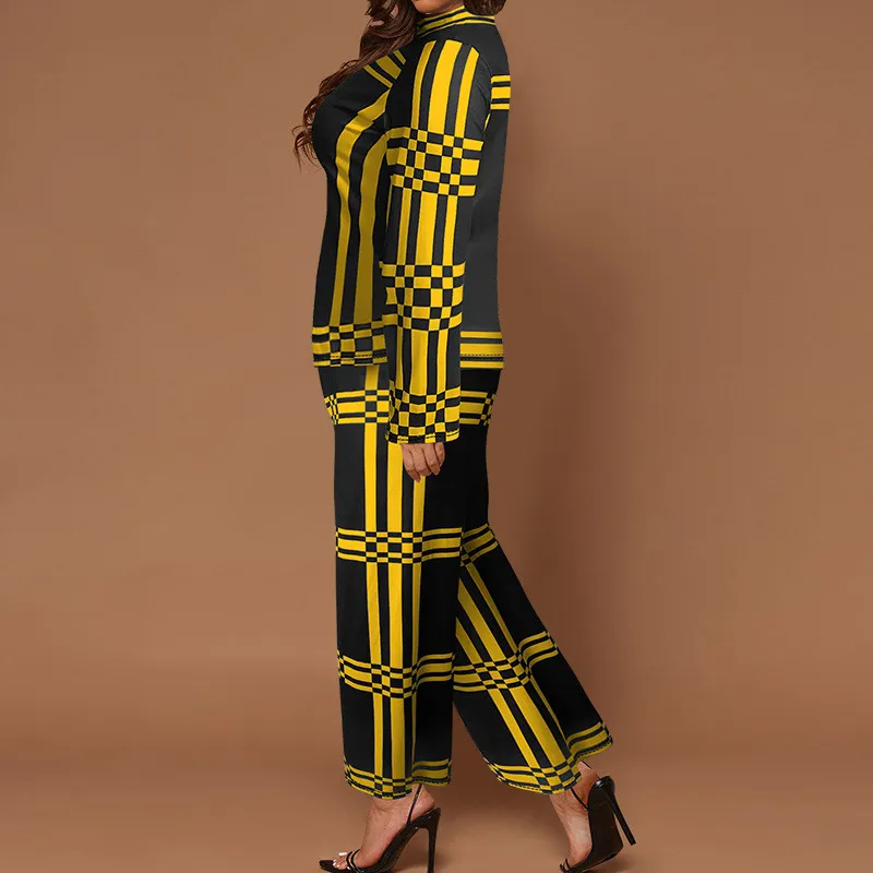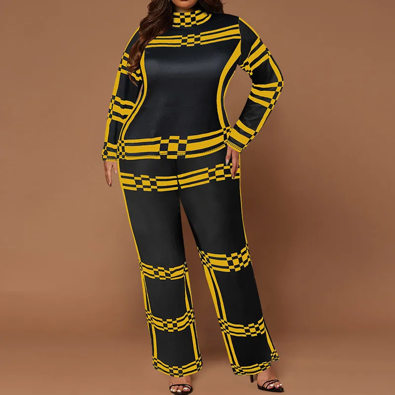 This Plus Size Women Stand Collar Striped Long Sleeve Top And Straight Pants Two-Piece Set Design Made Of High Quality Polyster And Spandex Material. It Is Stretchy, Durable And Comfortable. This Is The New Trend. Ladies Do Not Have To Worry About Dressing Matching. a Sexy Tight Fitting Jumpsuits And Rompers For Women Will Make Your Heart Beats In The Parties. a Loose Cut Jumpsuit With Wide Legs Appears More Elegant For Occasions. When You Need More Sexy Plus Size Jumpsuits Wholesale Online, You Can Find All Sizes Xl, Xxl, Xxxl, Xxxxl, Xxxxxl, Xxxxxxl At Global Lover.