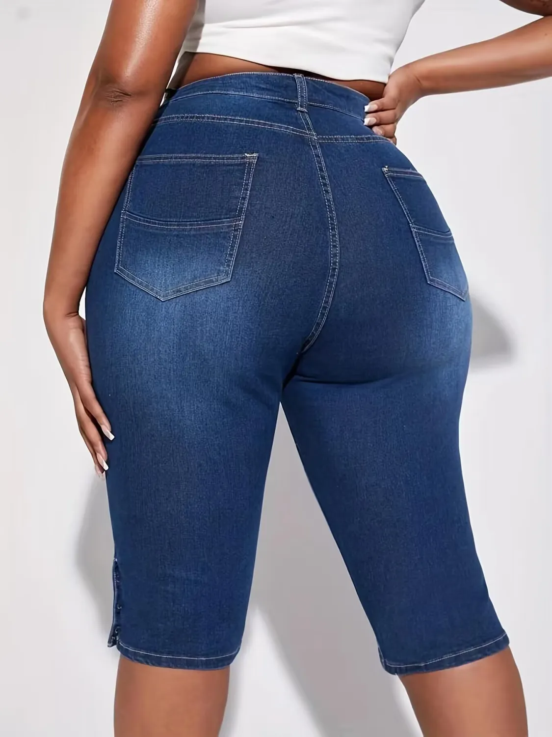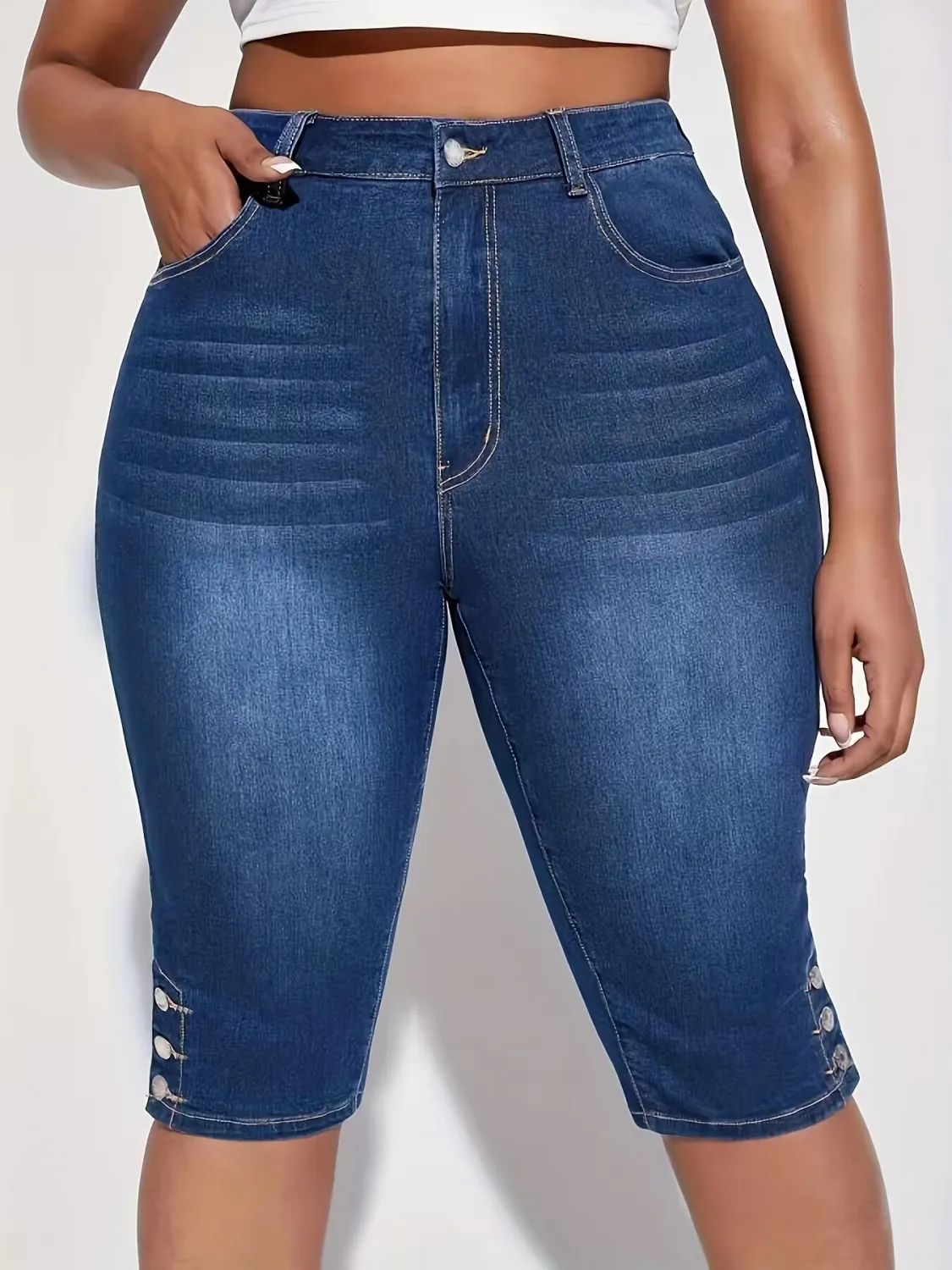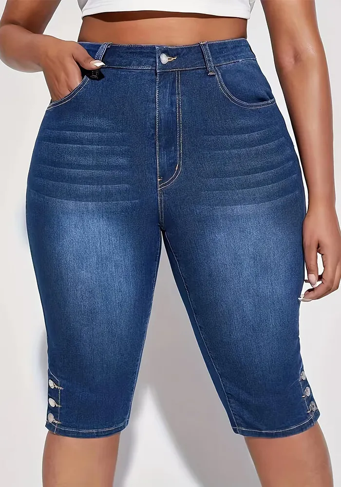 | Product Name | Plus Size Women Summer Button Stretch Denim Cropped Pants |