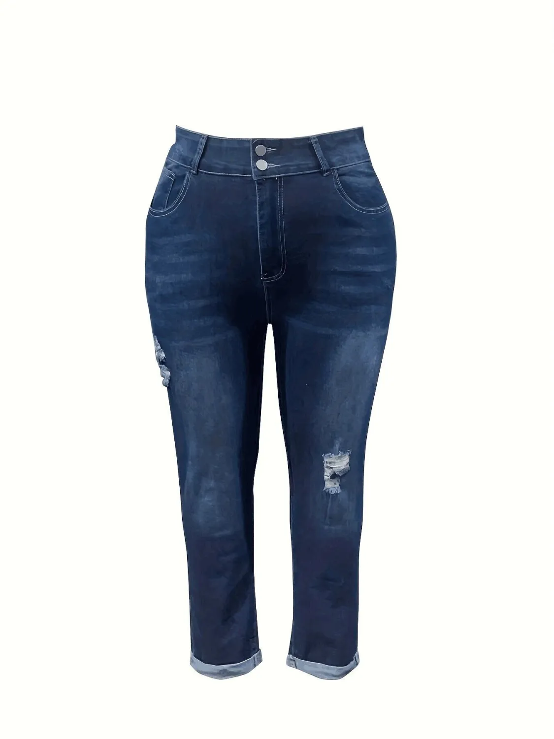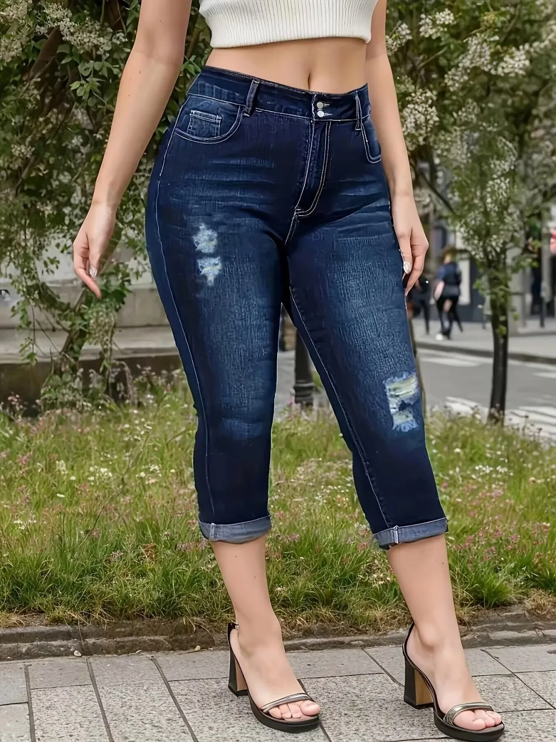 | Product Name | Plus Size Women Summer Ripped Stretch Denim Cropped Pants |