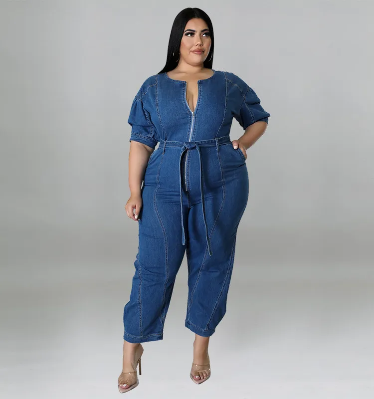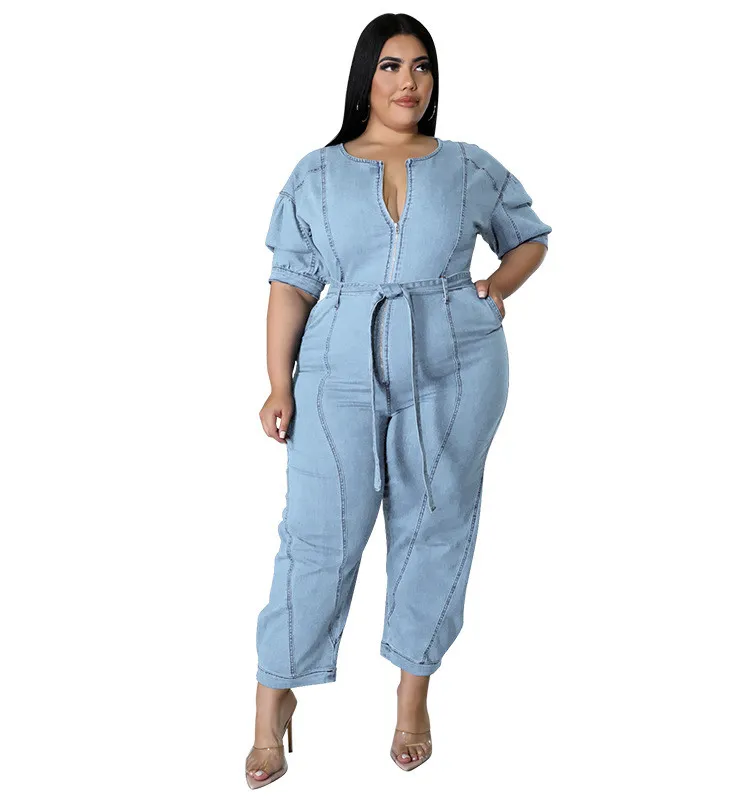 | Product Name | Plus Size Women Summer Short Sleeve Zipper Fashion Washed Denim Jumpsuit |