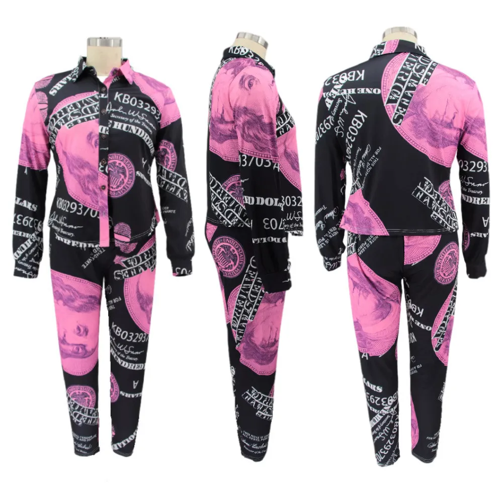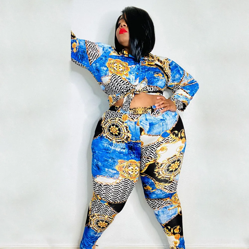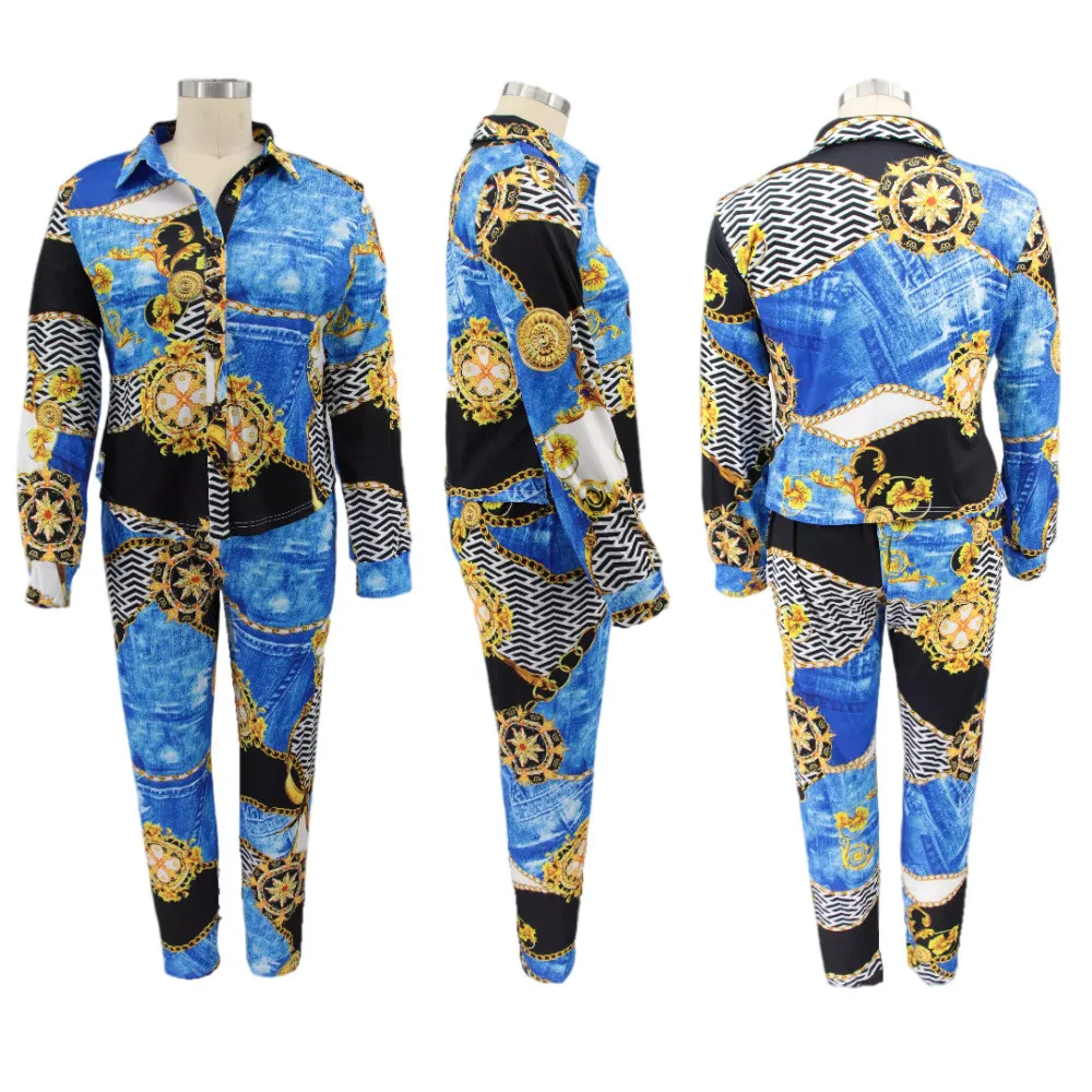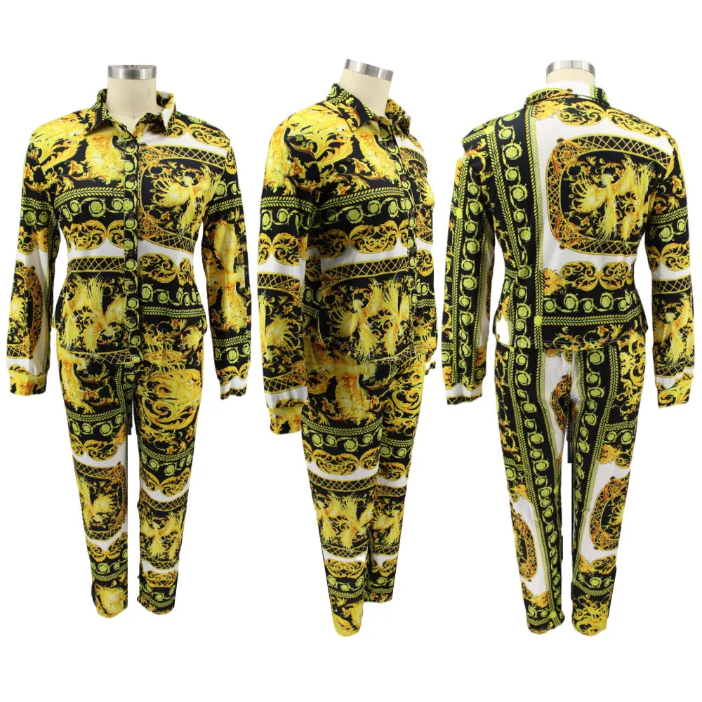This Plus Size Women Vintage Printed Long Sleeve Shirt + Pants Two-Piece Set Design Made Of High Quality Polyster And Spandex Material. It Is Stretchy, Durable And Comfortable. This Is The New Trend. Ladies Do Not Have To Worry About Dressing Matching. a Sexy Tight Fitting Jumpsuits And Rompers For Women Will Make Your Heart Beats In The Parties. a Loose Cut Jumpsuit With Wide Legs Appears More Elegant For Occasions. When You Need More Sexy Plus Size Jumpsuits Wholesale Online, You Can Find All Sizes Xl, Xxl, Xxxl, Xxxxl, Xxxxxl, Xxxxxxl At Global Lover.