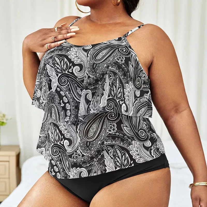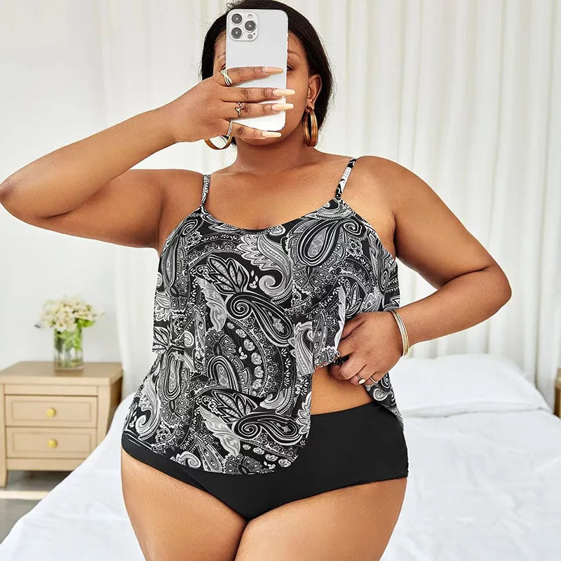 | Product Name | Print High Waist Two Piece Plus Size Tankini Swimsuit |