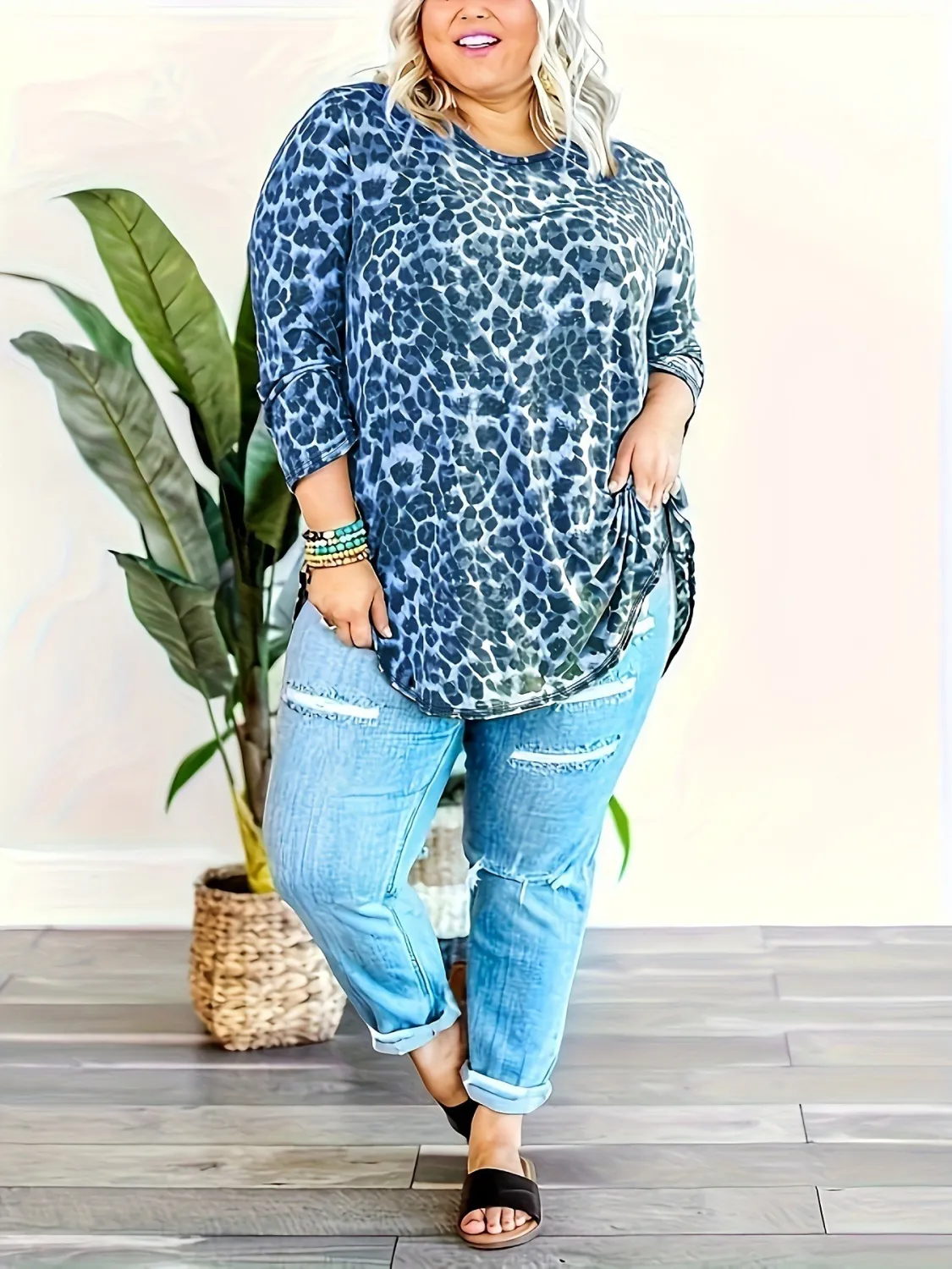 | Product Name | Printed Long Sleeve Plus Size Loose Top |
