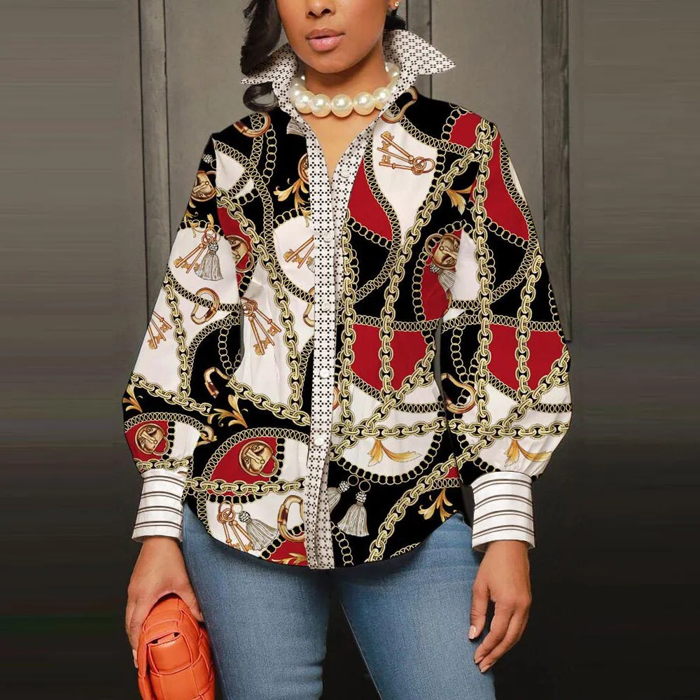 | Product Name | Sexy Slim Printed Puff Sleeve Top Plus Size Long Sleeve Shirt |