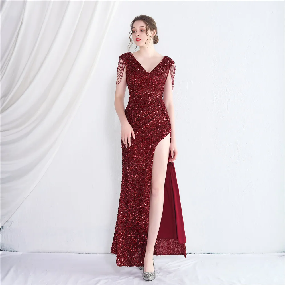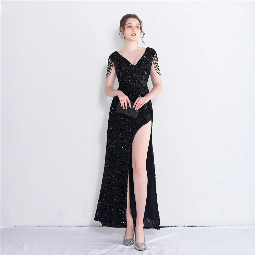 | Product Name | Sexy Slit V-neck long sequins Plus Size Beauty Formal Party Evening Dress |
