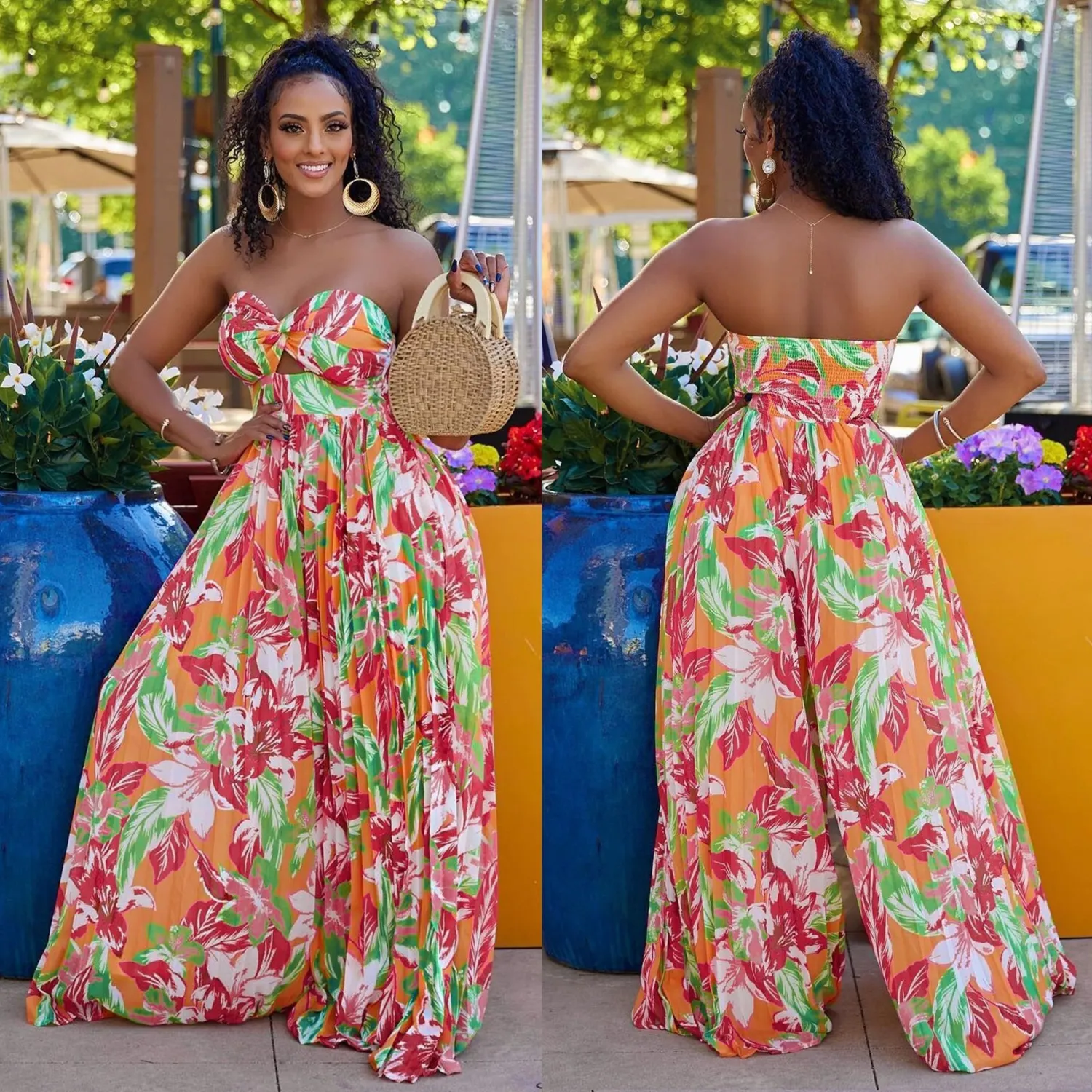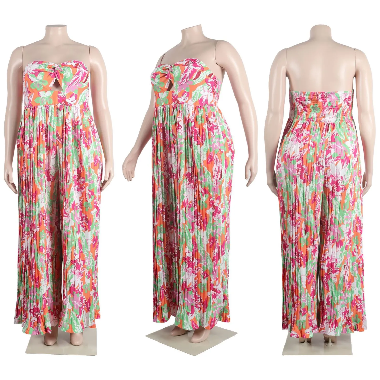 | Product Name | Sexy Strapless Print Plus Size Elasticized Wide Leg Pleated Plus Size Jumpsuit |