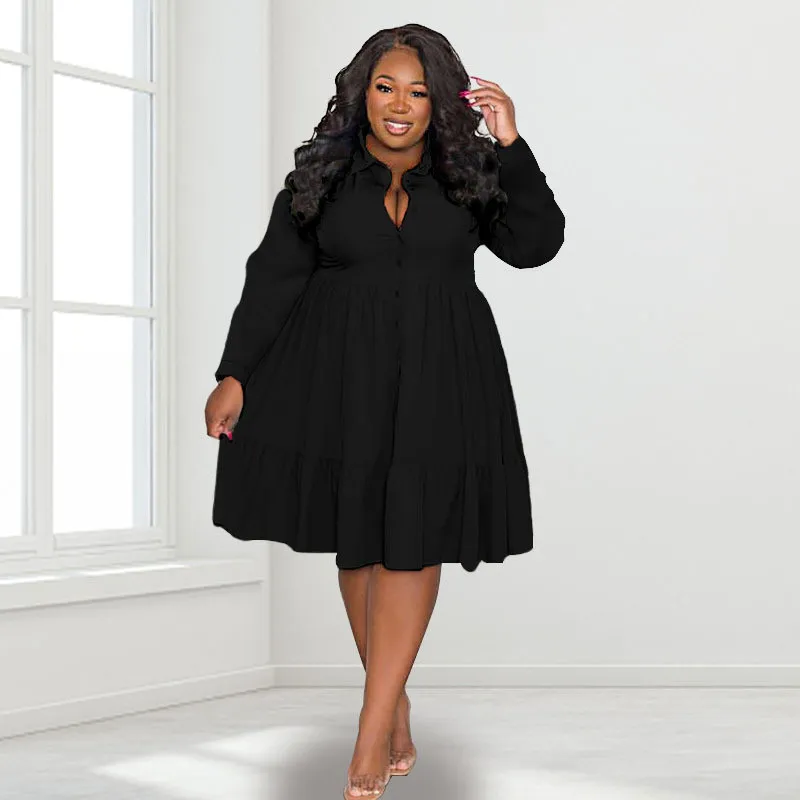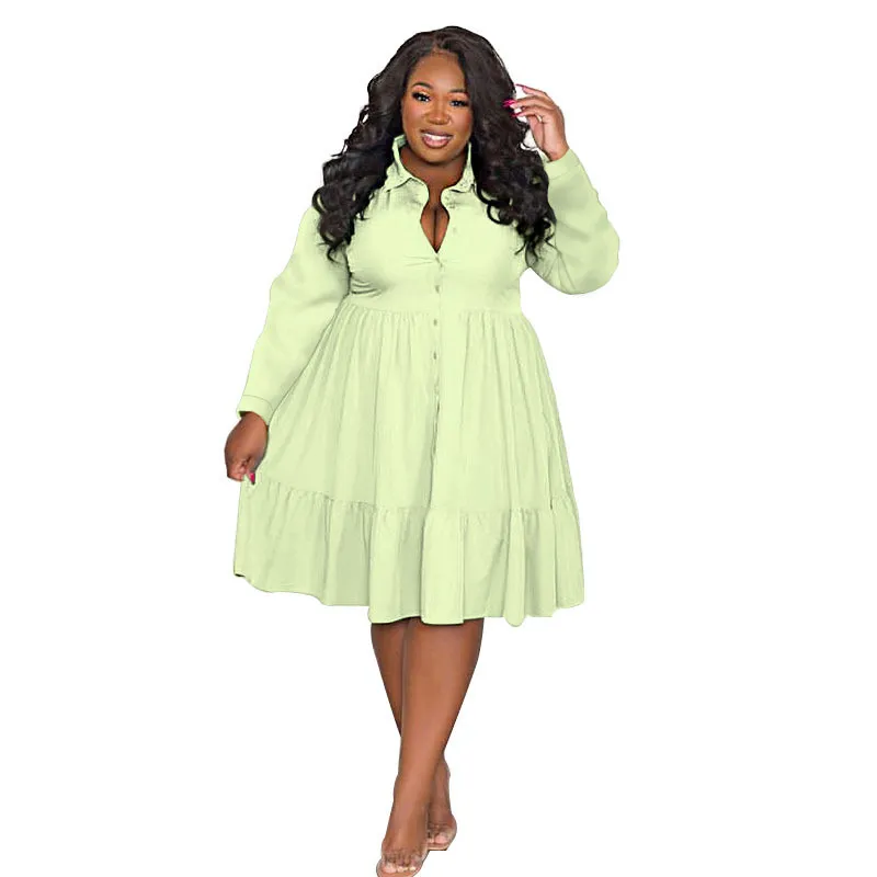 | Product Name | Spring Fall Solid Color Turndown Collar Single Breasted Long Sleeve Plus Size Women’s Stylish Shirt Dress |