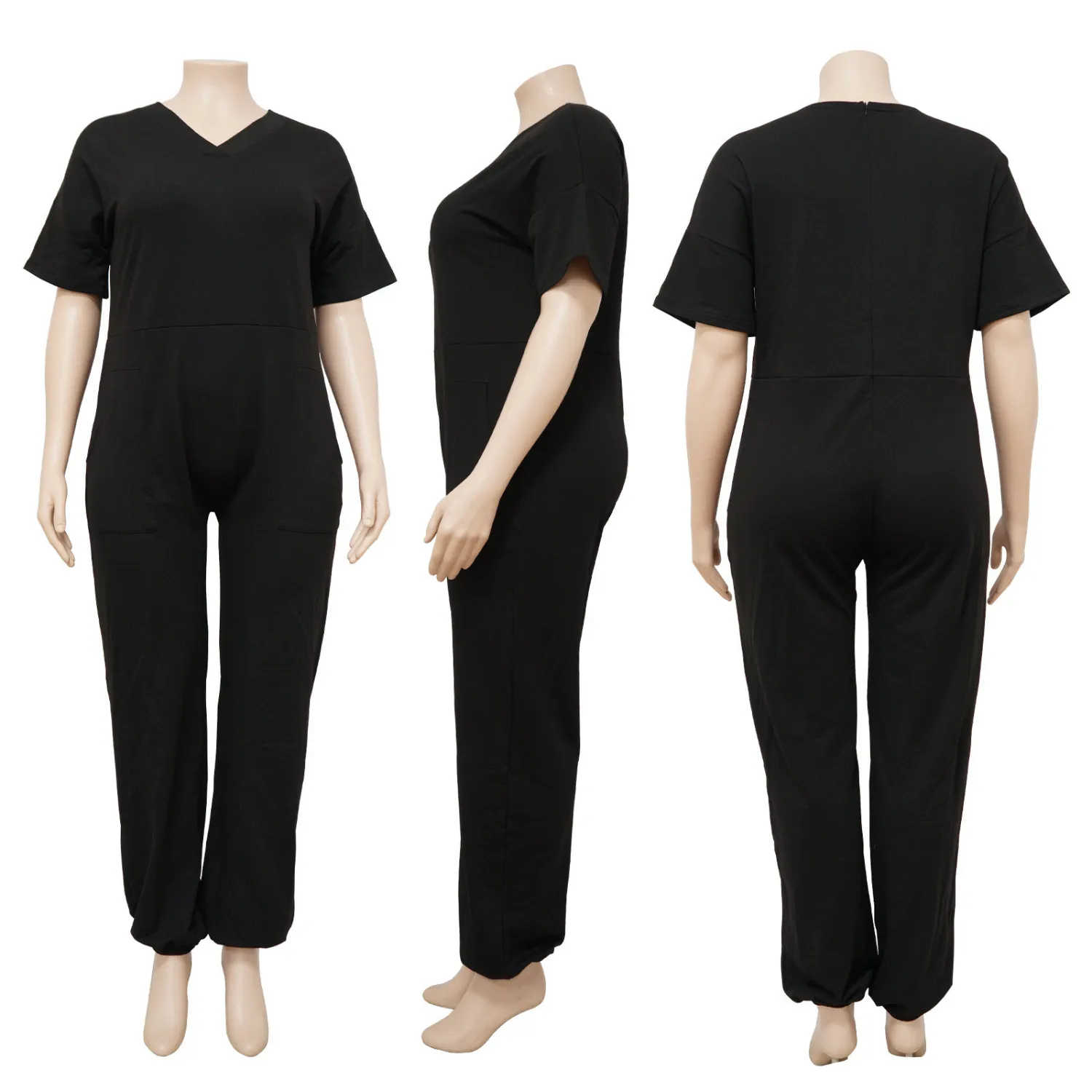 | Product Name | Spring Plus Size Women’S Solid Short Sleeve V-Neck Jumpsuit |