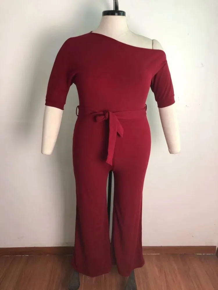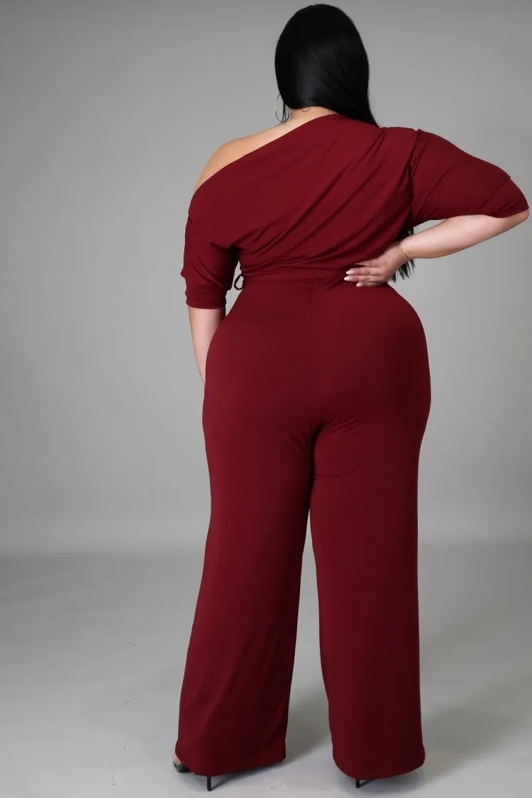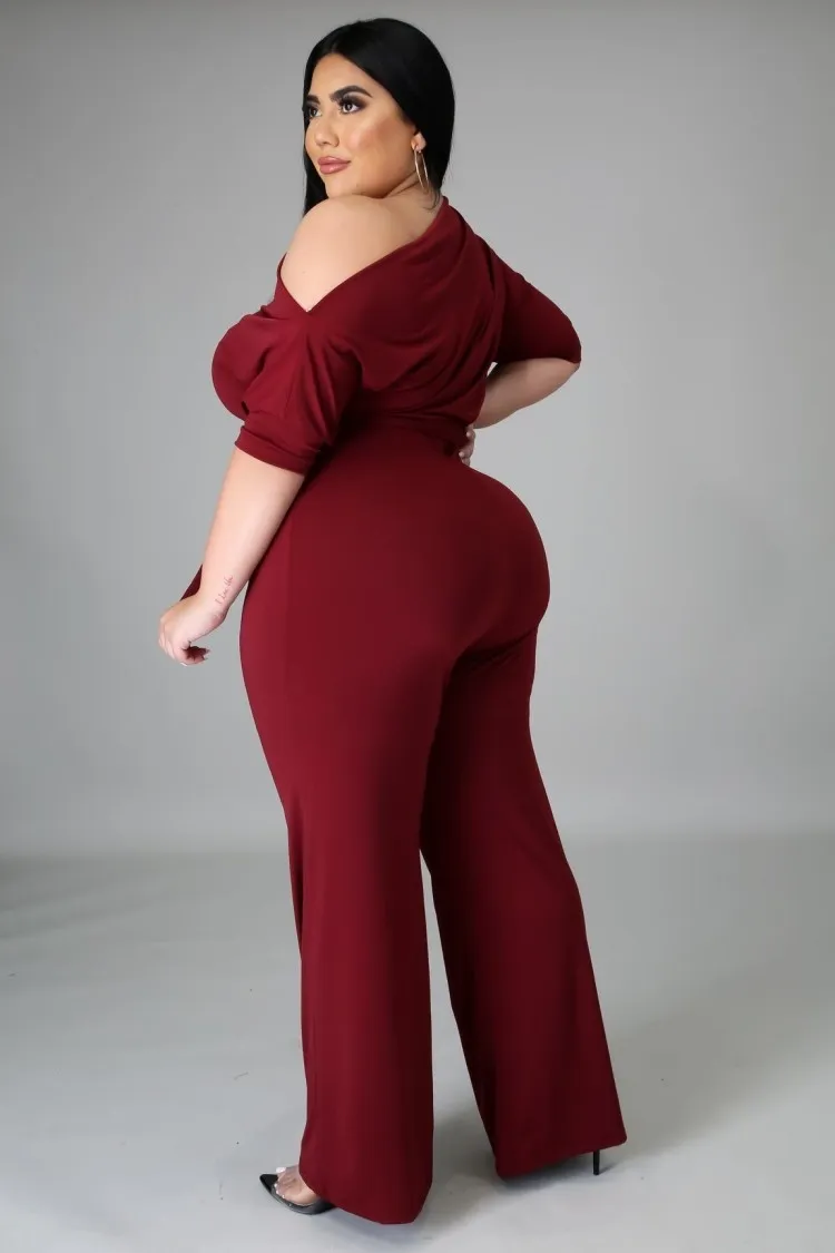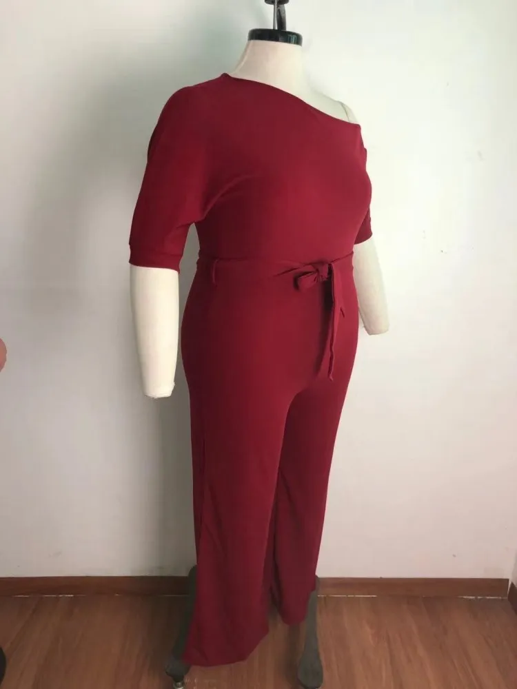 | Product Name | Summer Plus Size Burgunry Slash Shoulder Formal Jumpsuit |