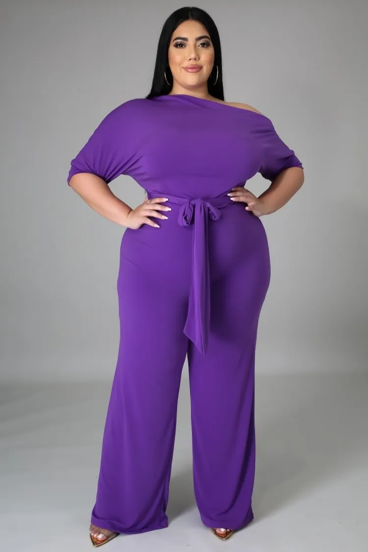 | Product Name | Summer Plus Size Purple Slash Shoulder Formal Jumpsuit |