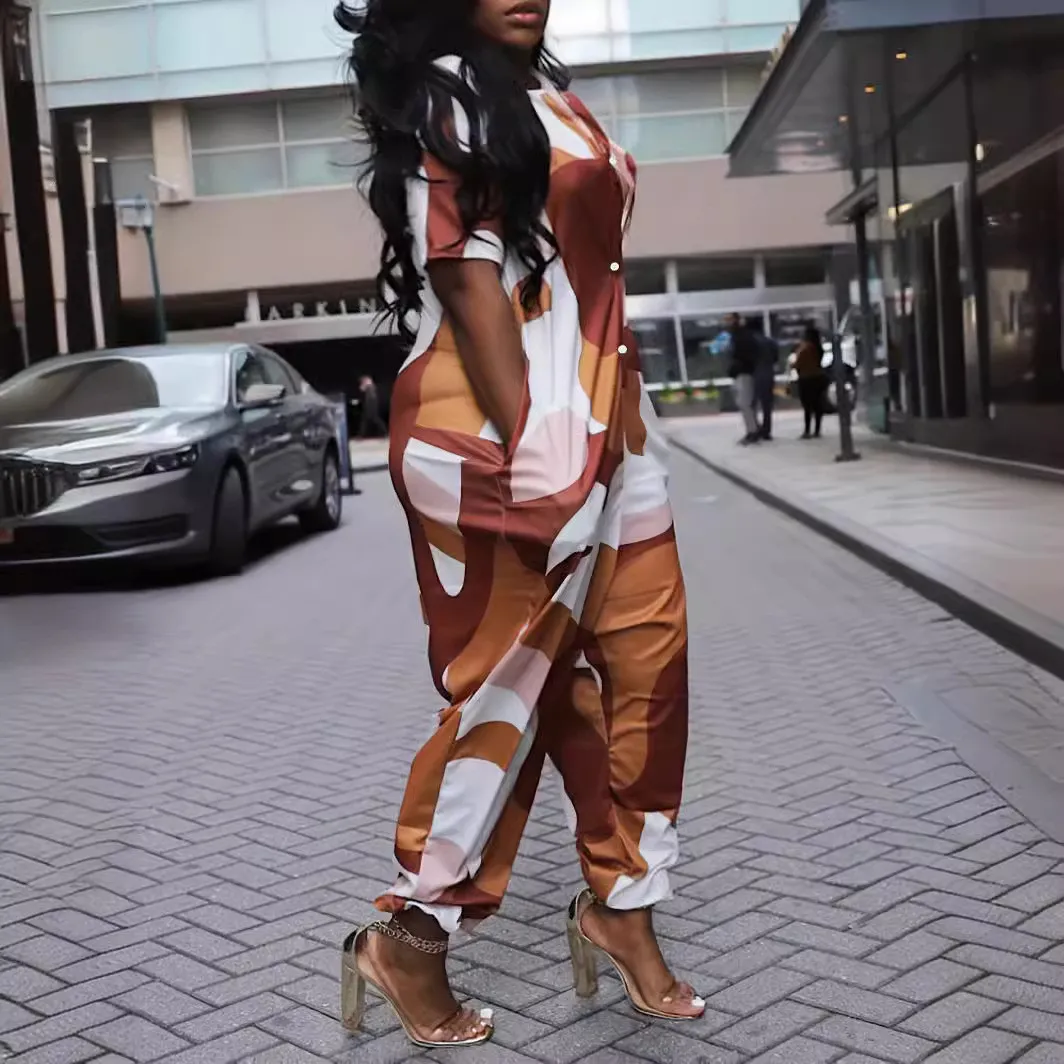 | Product Name | Summer Plus Size Turndown Collar Loose One-Piece Irregular Print Sexy Jumpsuit |