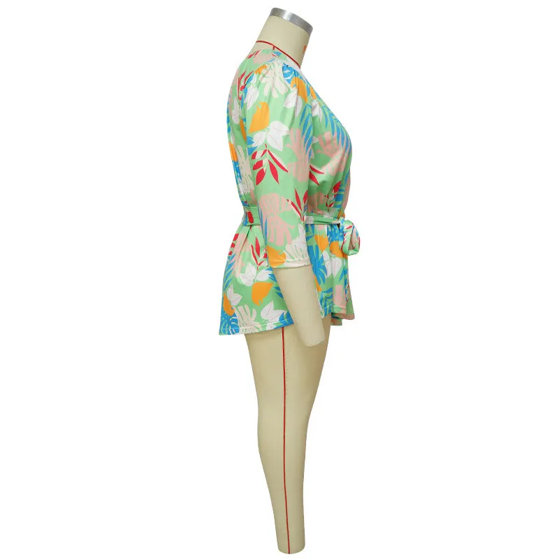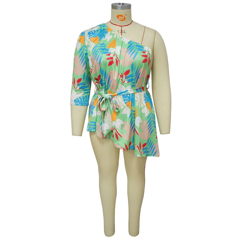 | Product Name | Summer Printed Plus Size Ladies One Shoulder Long Sleeve Lace Up Top |