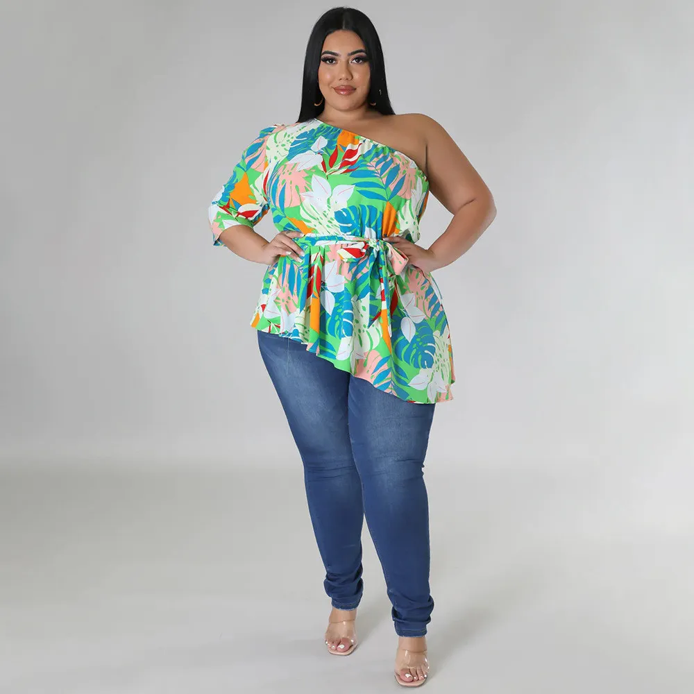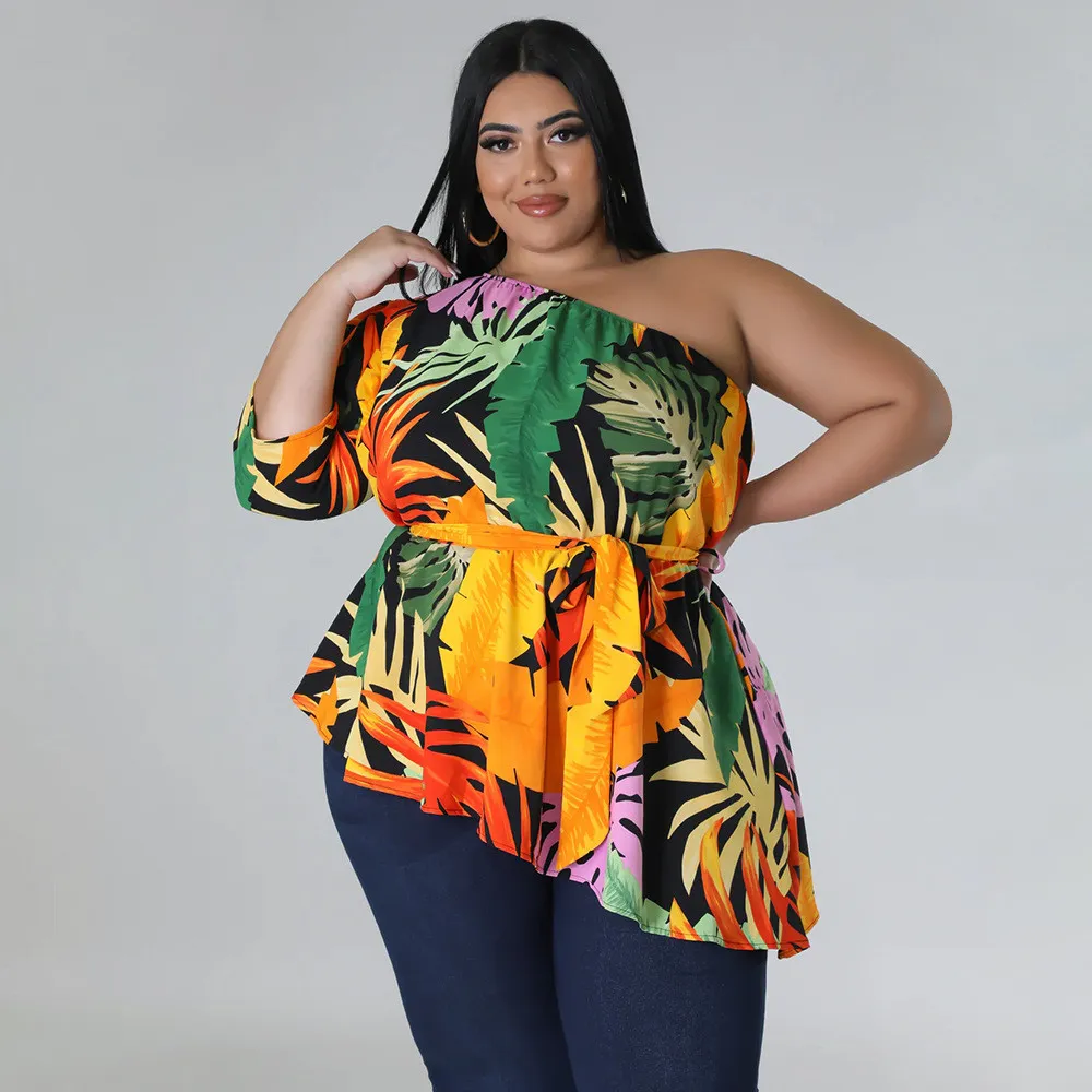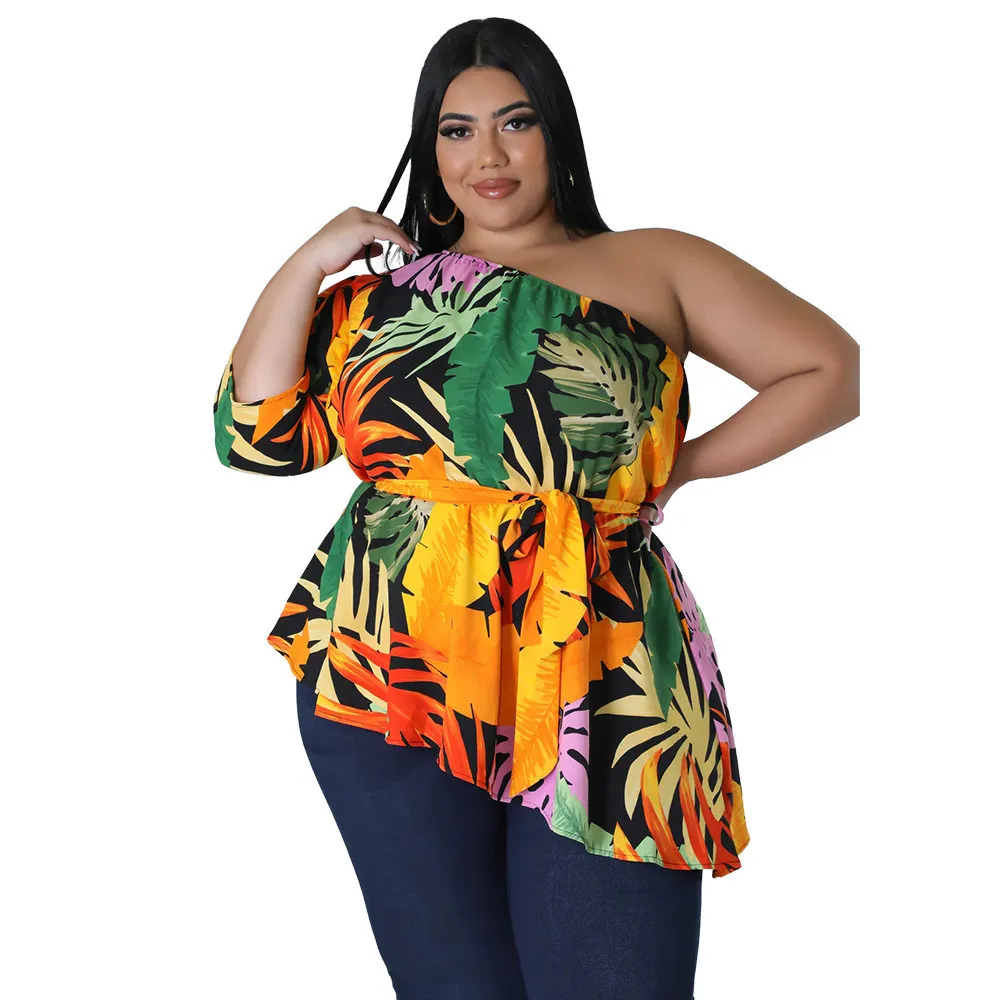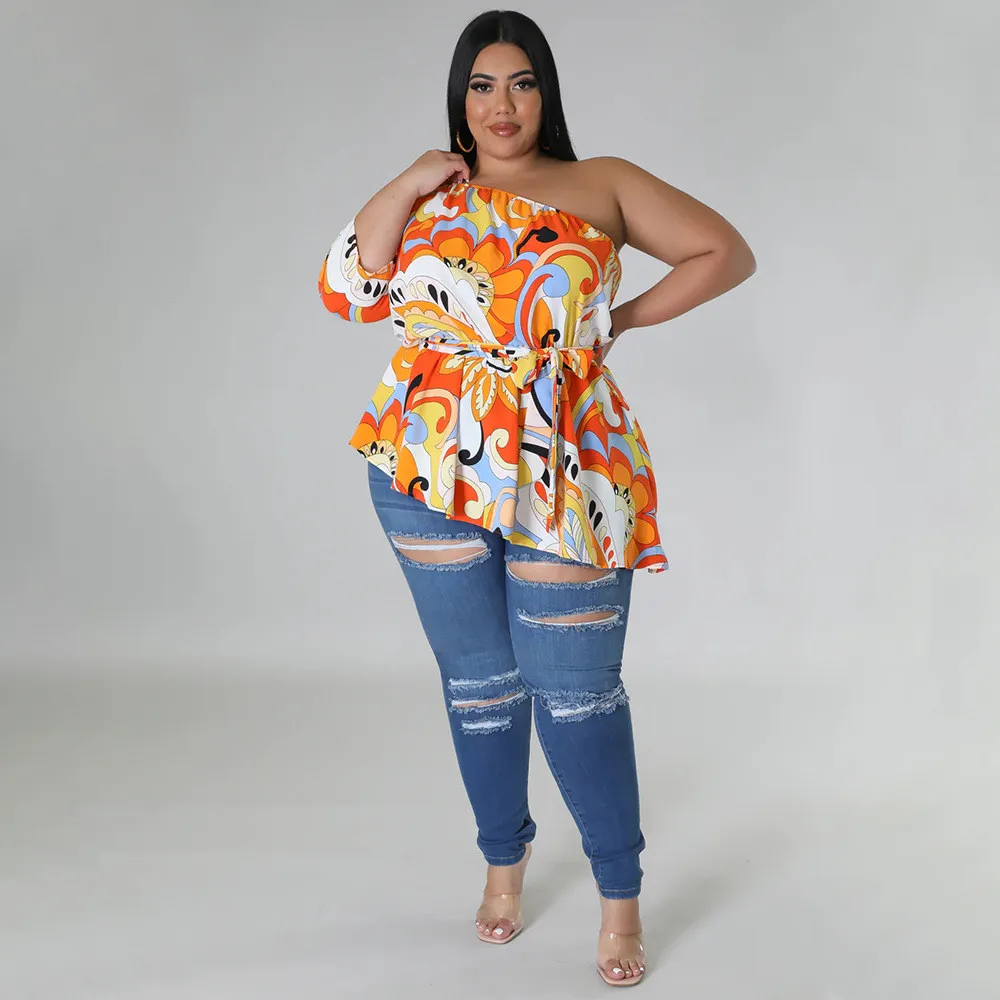 This Summer Printed Plus Size Ladies One Shoulder Long Sleeve Lace Up Top Made Of Comfortable And Elastic Fabric. It Is Wholesale Sexy Plus Size Tops For Women. With The Gradual Rise Of Feminist Awareness, The Mainstream Fashion Of “Beauty With Thinness” In The Past Can No Longer Dominate, Global Lover Advocates That No Matter Whether The Body Is Thick Or Thin, We Are The Most Unique Existence. Fat Girls Can Also Show Off Their Figure Generously. Global Lover Offer All Kinds Of Wholesale Plus Size Blouses And Shirts At Cheap Price And High Quality.