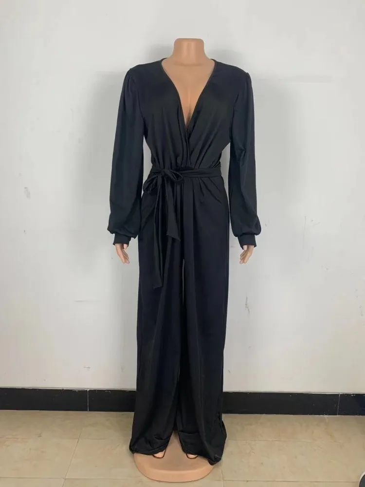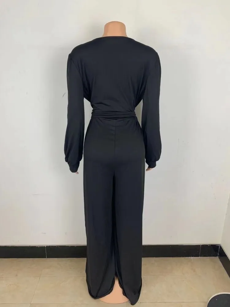 | Product Name | Winter Black V-Neck Wrap Long Sleeve Wide Legges Plus Size Jumpsuit |