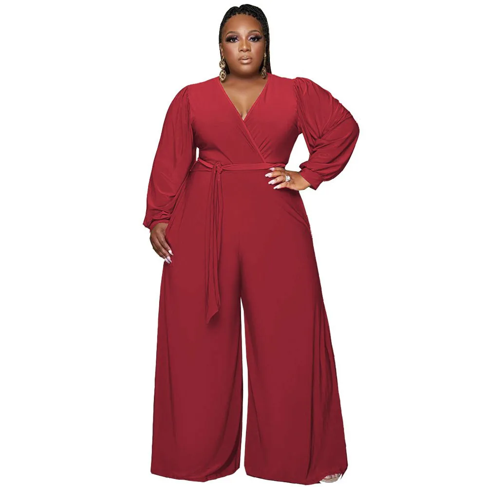 | Product Name | Winter Red V-Neck Wrap Long Sleeve Wide Legges Plus Size Jumpsuit |