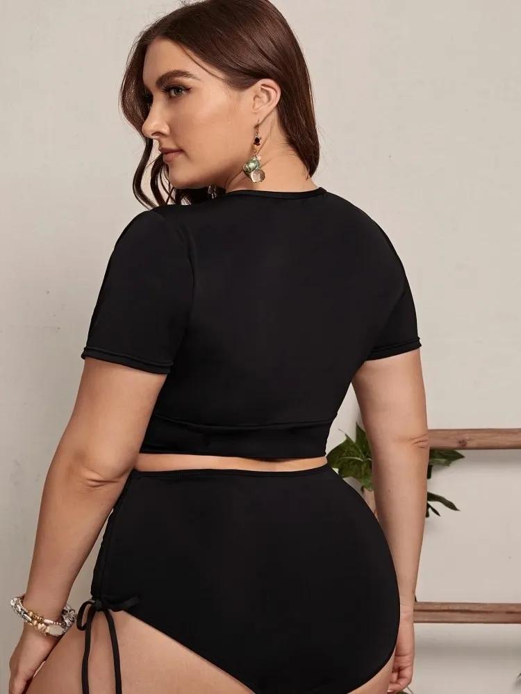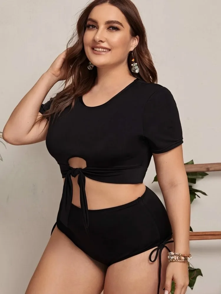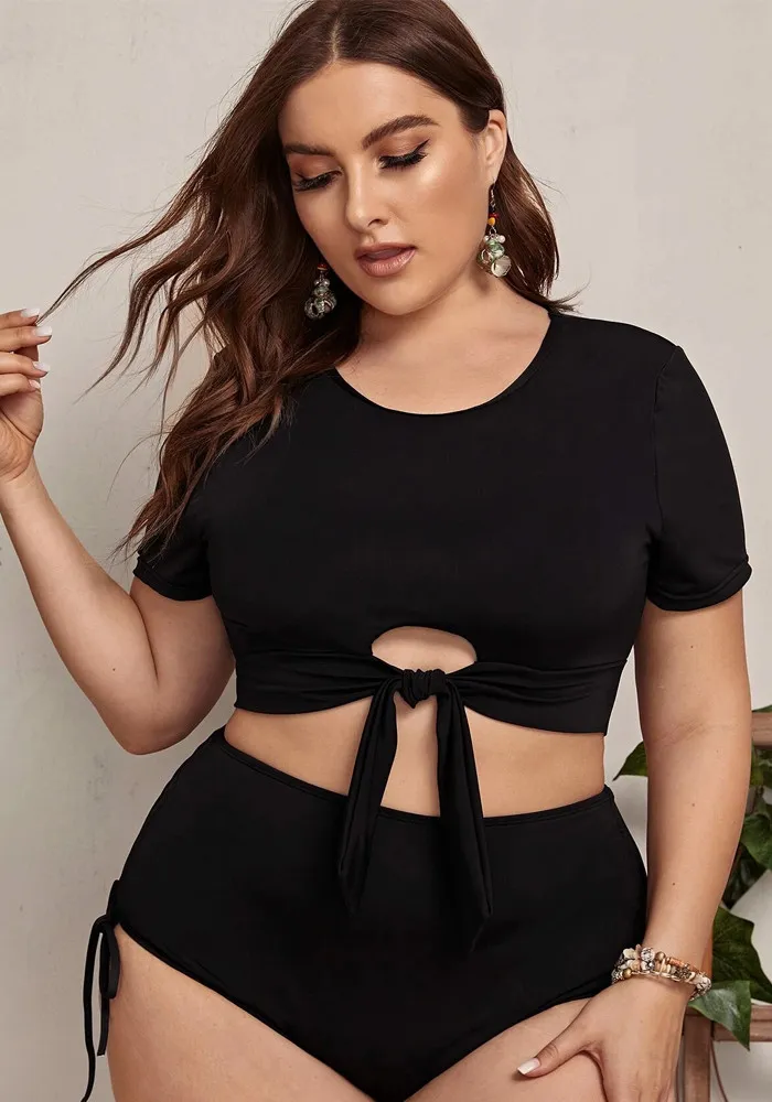 | Product Name | Women Black Bikini Round Neck Solid Hollow Out Plus Size Two Piece Swimwear |