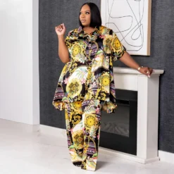 This Women Printed Short Sleeve Shirt Collar And Pant Casual Two-Piece Set Design And Made Of Comfortable And Elastic Fabric. Wholesale Plus Size Two Piece Sets Is a Must-Have Item For Curvy Ladies. Two Piece Sets Can Either Be Worn Together Or Individually, So You Can Combine Them Endlessly. Global Lover Offer Wide Range Selection And Hope Curvy Ladies Find Here a Warm And Exciting Place To Shop Cheap 2 Piece Suits Xl To 6xl. When You Need More Wholesale Plus Size Styles, You Can Always Find What You Need On Our Plus Size Best Online Site.
