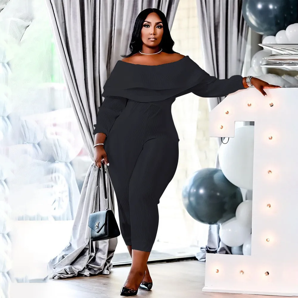 | Product Name | Women’s Plus Size Loose Ruffle Off Shoulder Ribbed Jumpsuit |