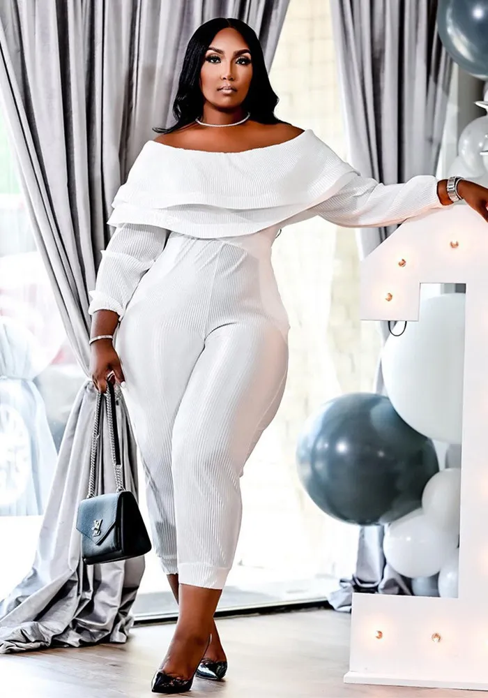 This Women’s Plus Size Loose Ruffle Off Shoulder Ribbed Jumpsuit Design Made Of High Quality Polyster And Spandex Material. It Is Stretchy, Durable And Comfortable. This Is The New Trend. Ladies Do Not Have To Worry About Dressing Matching. a Sexy Tight Fitting Jumpsuits And Rompers For Women Will Make Your Heart Beats In The Parties. a Loose Cut Jumpsuit With Wide Legs Appears More Elegant For Occasions. When You Need More Sexy Plus Size Jumpsuits Wholesale Online, You Can Find All Sizes Xl, Xxl, Xxxl, Xxxxl, Xxxxxl, Xxxxxxl At Global Lover.