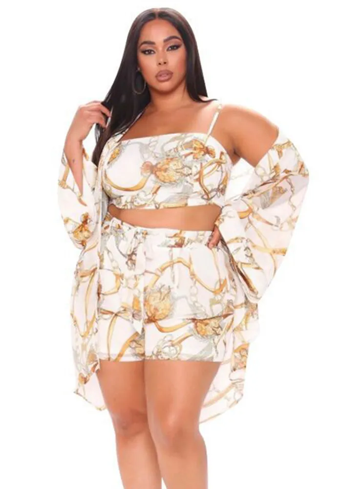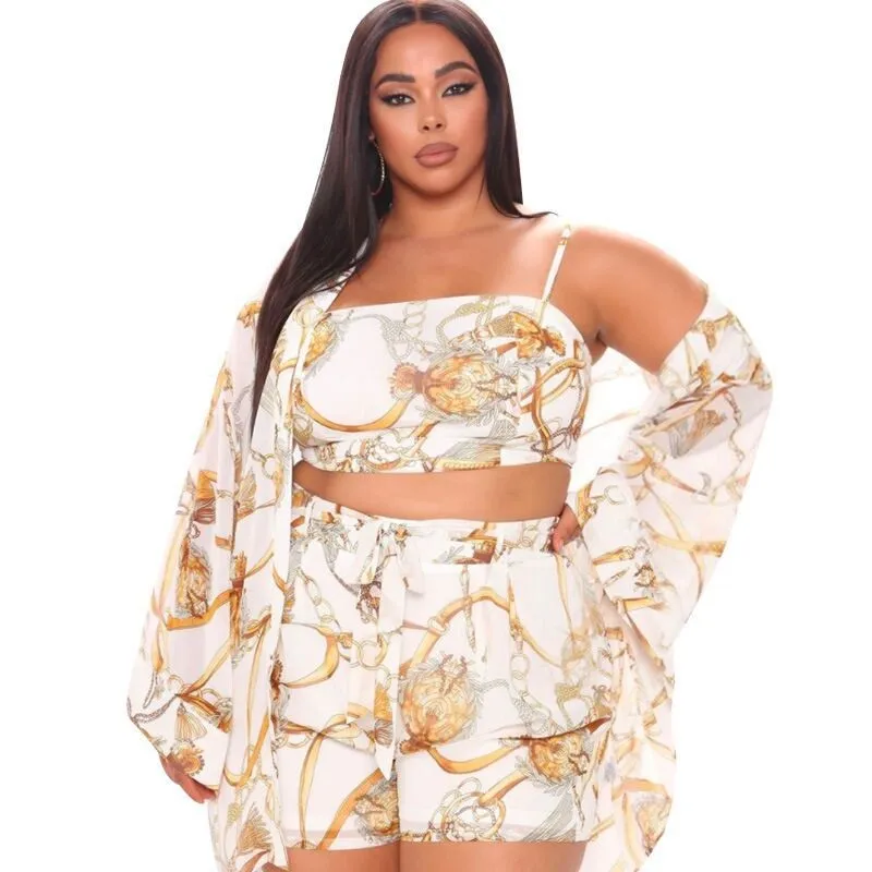 This Women’s Plus Size Loose Summer Sexy Fashion Casual Three-Piece Shorts Set Design And Made Of Comfortable And Elastic Fabric. Wholesale Plus Size Two Piece Sets Is a Must-Have Item For Curvy Ladies. Two Piece Sets Can Either Be Worn Together Or Individually, So You Can Combine Them Endlessly. Global Lover Offer Wide Range Selection And Hope Curvy Ladies Find Here a Warm And Exciting Place To Shop Cheap 2 Piece Suits Xl To 6xl. When You Need More Wholesale Plus Size Styles, You Can Always Find What You Need On Our Plus Size Best Online Site.