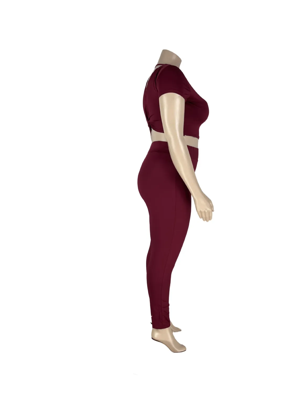 | Product Name | Women’s Plus Size Short Sleeve Trousers Solid Color Cross Back Slim Sexy Two-Piece Set |