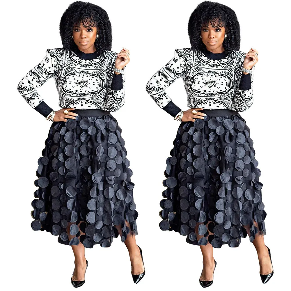 | Product Name | Women’s polka dot black mesh skirt long A-line skirt |