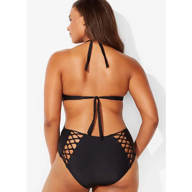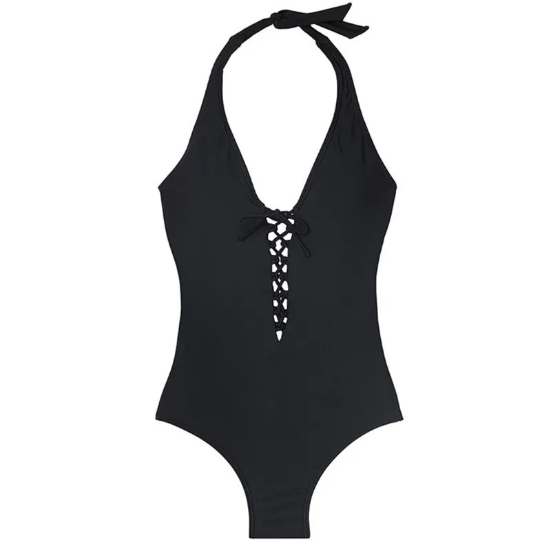 | Product Name | Women’s Solid Color Halter Neck Lace-Up One Piece Plus Size Swimwear |