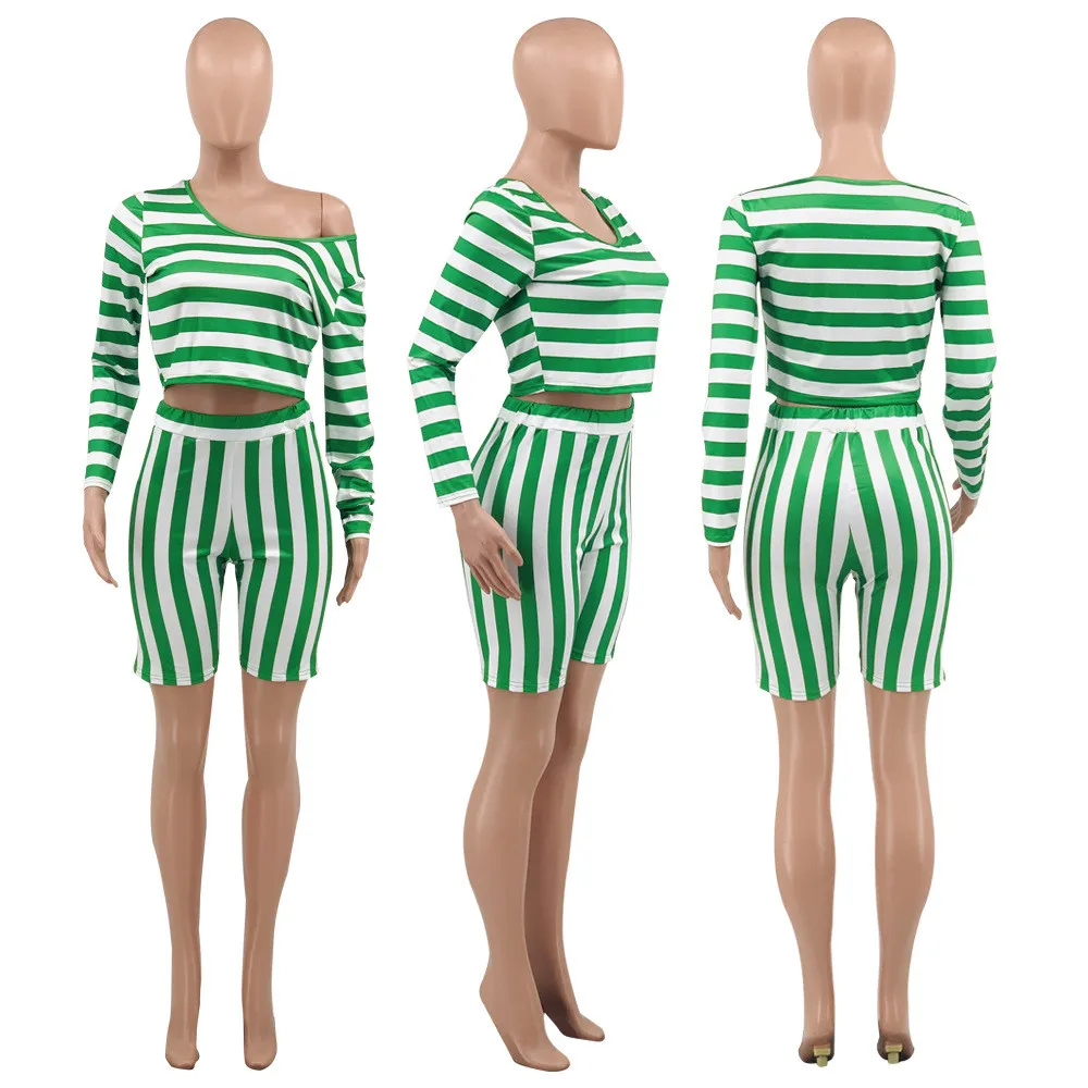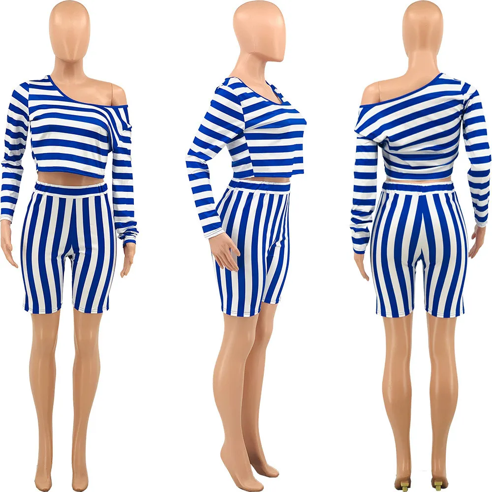 | Product Name | Women’s Spring Striped Off Shoulder Long Sleeve Fashion Plus Size Casual Set |