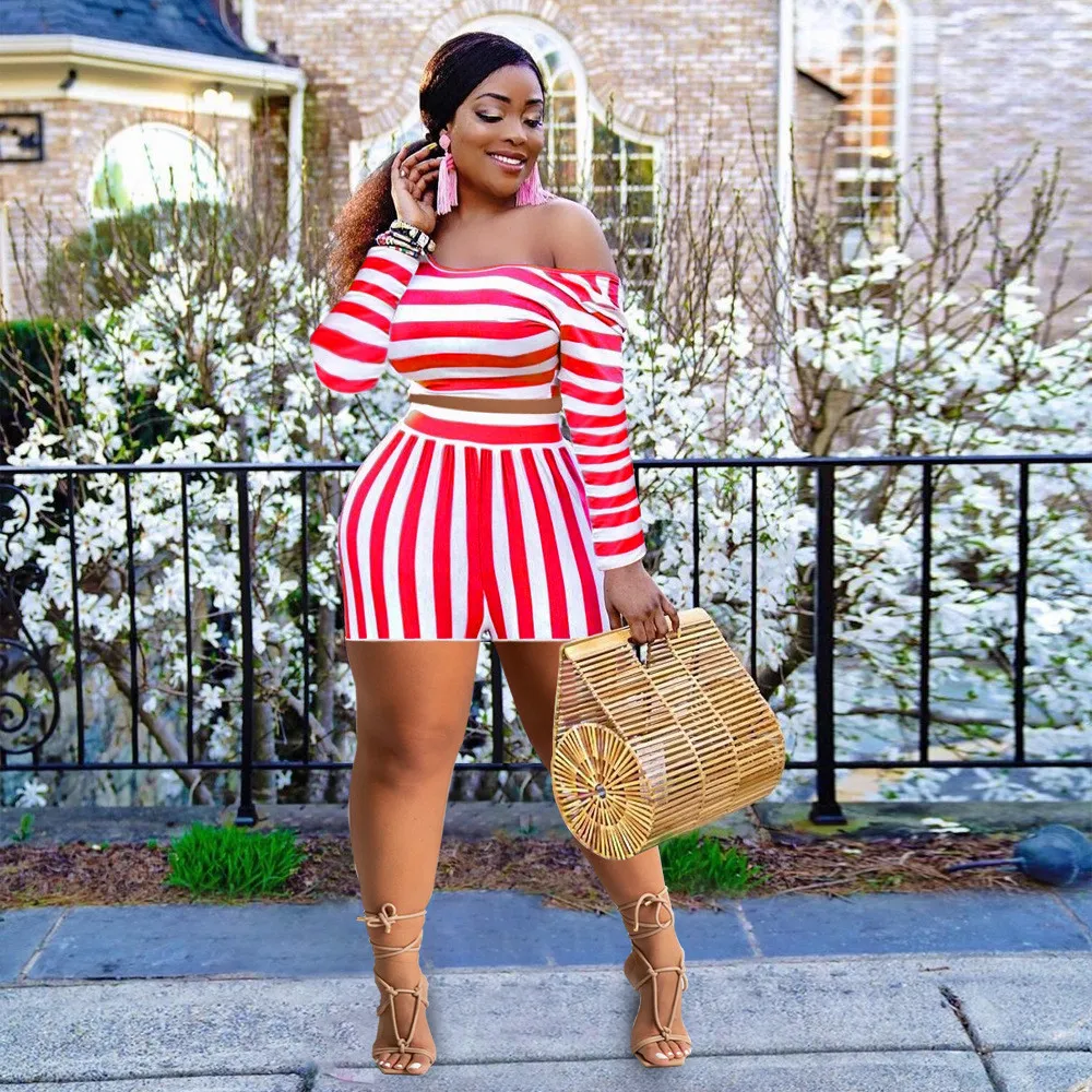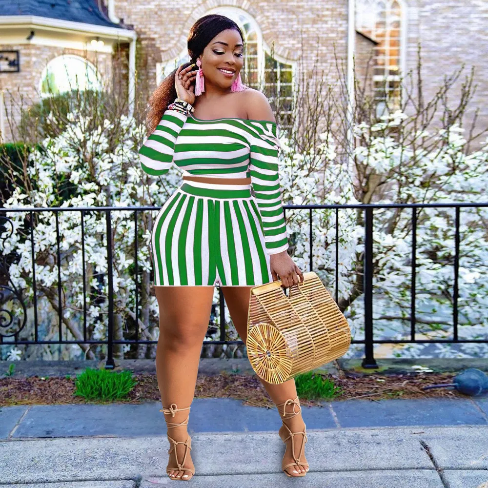 This Women’s Spring Striped Off Shoulder Long Sleeve Fashion Plus Size Casual Set Design And Made Of Comfortable And Elastic Fabric. Wholesale Plus Size Two Piece Sets Is a Must-Have Item For Curvy Ladies. Two Piece Sets Can Either Be Worn Together Or Individually, So You Can Combine Them Endlessly. Global Lover Offer Wide Range Selection And Hope Curvy Ladies Find Here a Warm And Exciting Place To Shop Cheap 2 Piece Suits Xl To 6xl. When You Need More Wholesale Plus Size Styles, You Can Always Find What You Need On Our Plus Size Best Online Site.