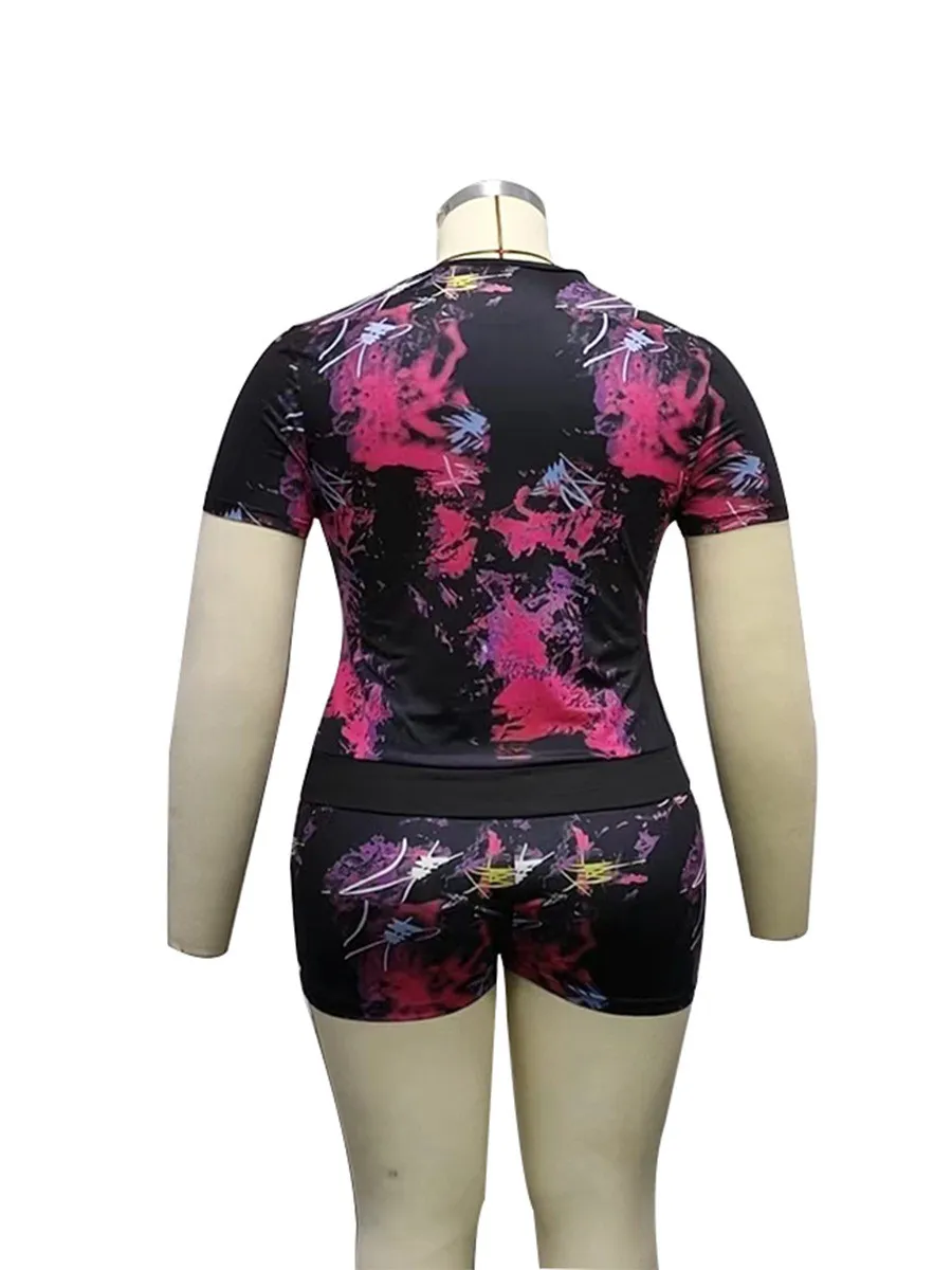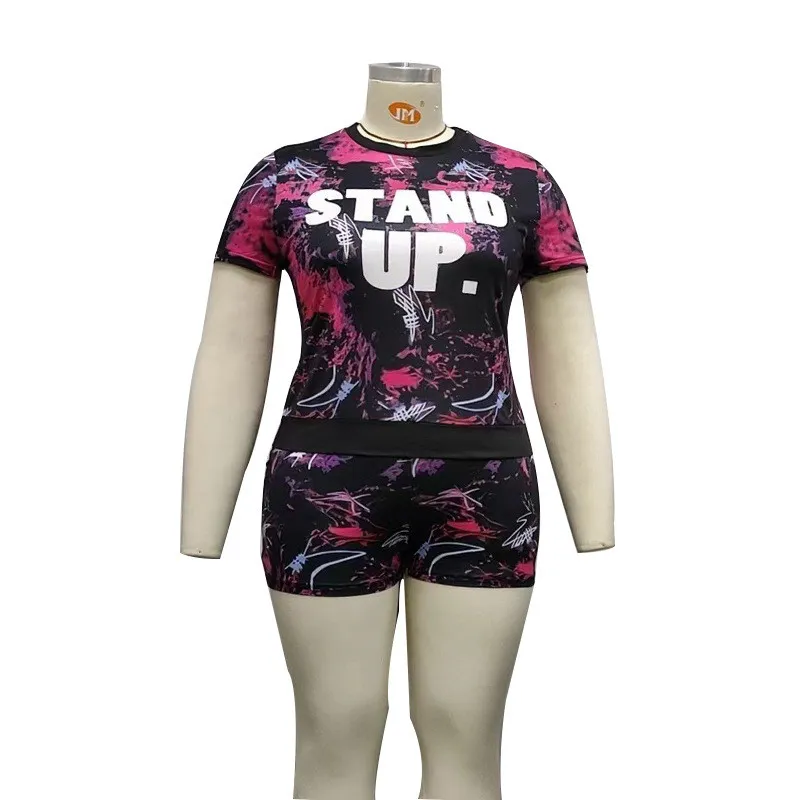 | Product Name | Women’s Summer Trend Letter Print Plus Size Short Sleeve T-Shirt Shorts Two Piece Set |