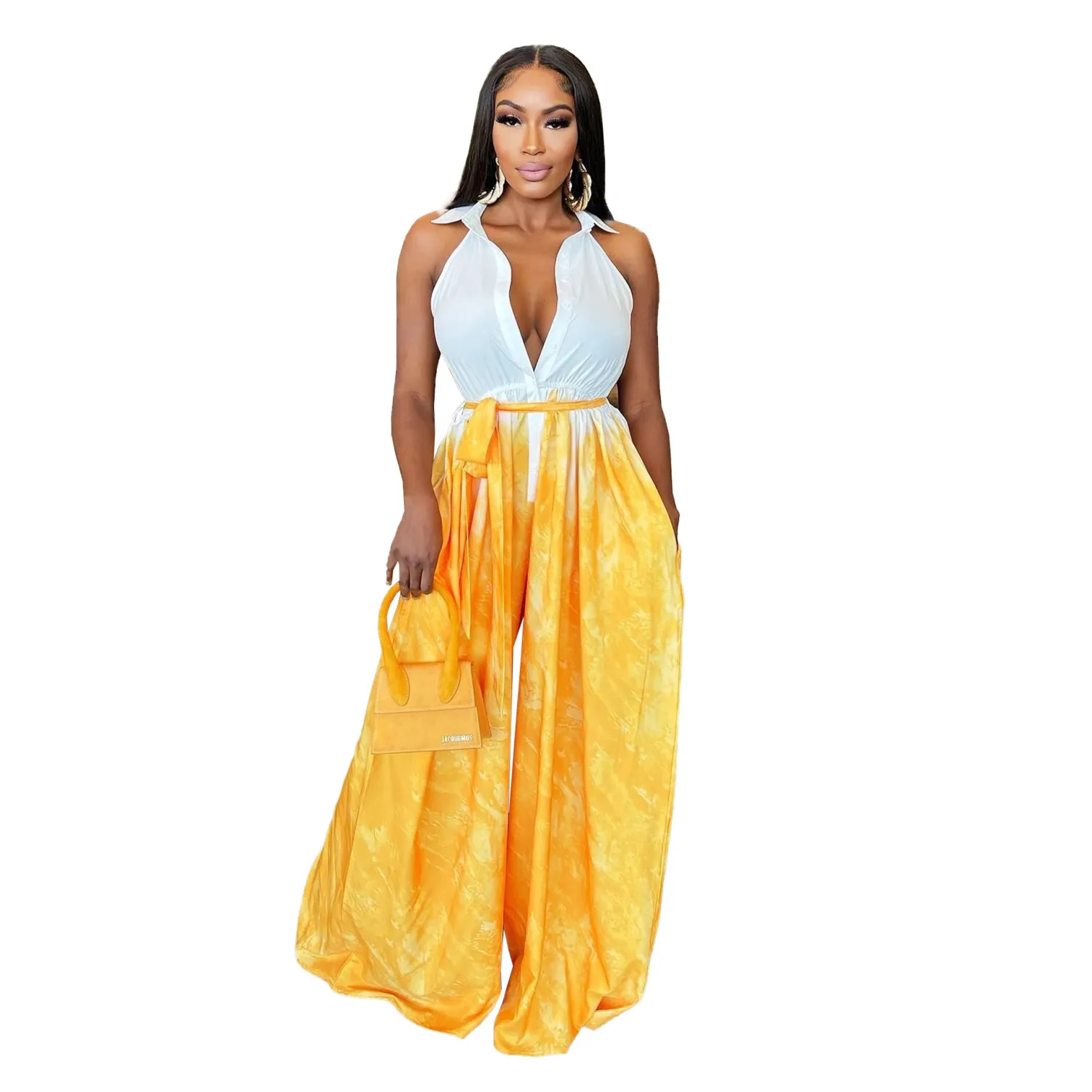 | Product Name | Women Sexy Print Shirt Collar Wide Leg Lace-Up Jumpsuit |
