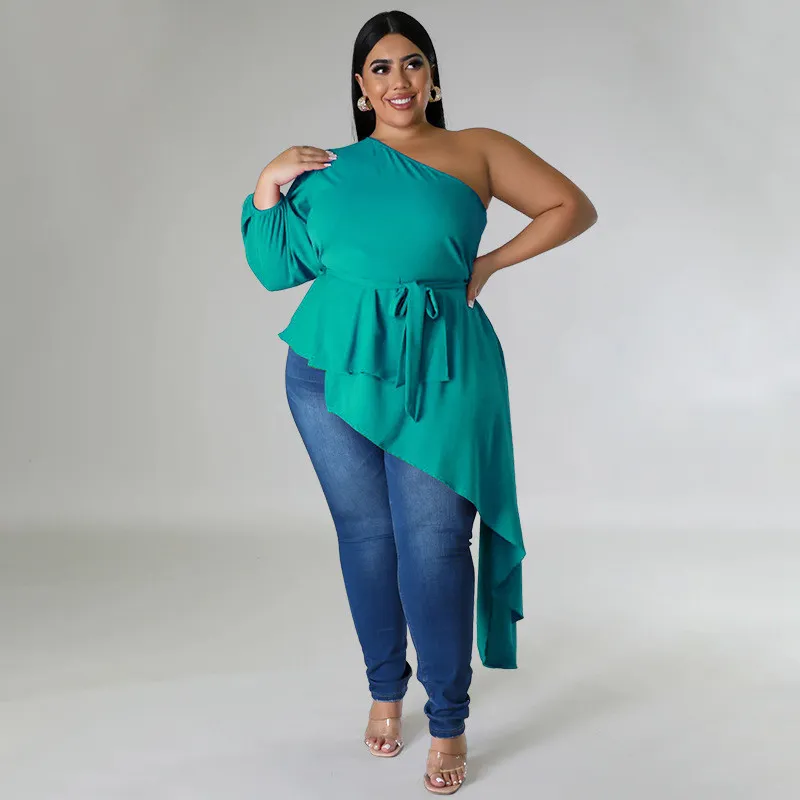 This Women Style Irregular One Shoulder Long Sleeve Sexy Top Made Of Comfortable And Elastic Fabric. It Is Wholesale Sexy Plus Size Tops For Women. With The Gradual Rise Of Feminist Awareness, The Mainstream Fashion Of “Beauty With Thinness” In The Past Can No Longer Dominate, Global Lover Advocates That No Matter Whether The Body Is Thick Or Thin, We Are The Most Unique Existence. Fat Girls Can Also Show Off Their Figure Generously. Global Lover Offer All Kinds Of Wholesale Plus Size Blouses And Shirts At Cheap Price And High Quality.