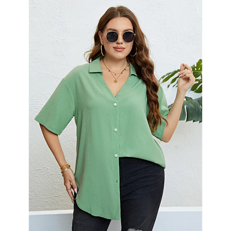 This Women Summer v-Neck Loose Casual Shirt Made Of Comfortable And Elastic Fabric. It Is Wholesale Sexy Plus Size Tops For Women. With The Gradual Rise Of Feminist Awareness, The Mainstream Fashion Of “Beauty With Thinness” In The Past Can No Longer Dominate, Global Lover Advocates That No Matter Whether The Body Is Thick Or Thin, We Are The Most Unique Existence. Fat Girls Can Also Show Off Their Figure Generously. Global Lover Offer All Kinds Of Wholesale Plus Size Blouses And Shirts At Cheap Price And High Quality.
